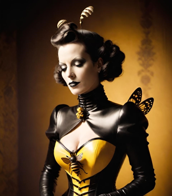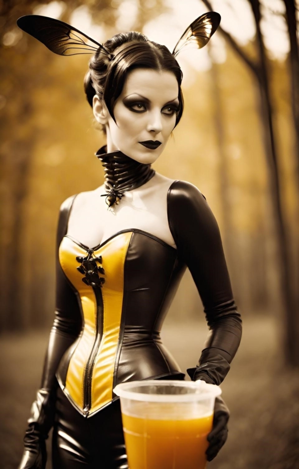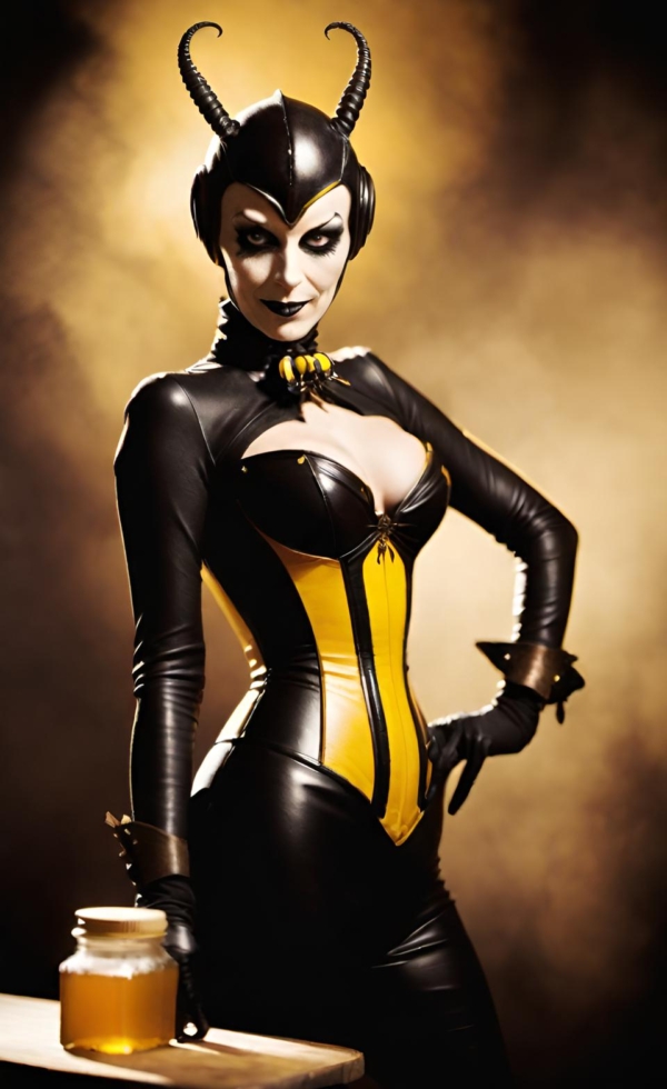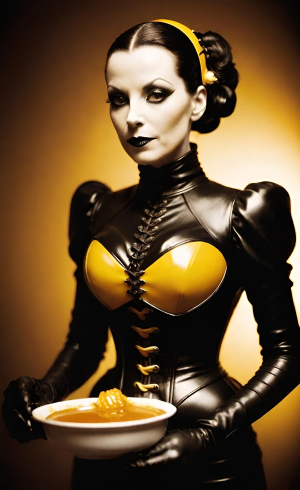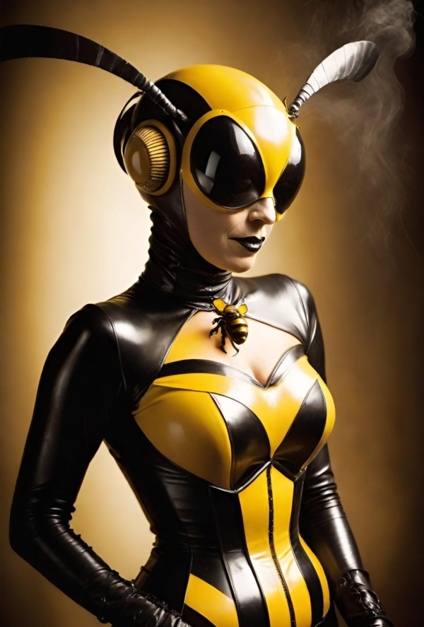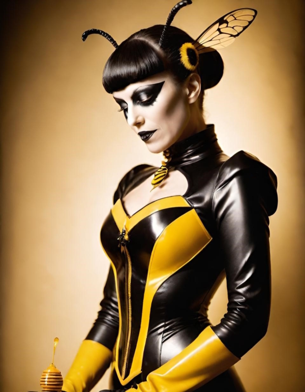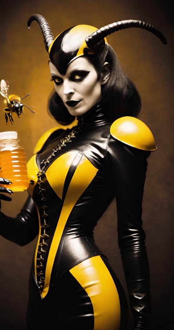 FetishPop! notes: “Royal jelly is 67% water, 12.5% protein, 11% simple sugars, 6% fatty acids and 3.5% 10-hydroxy-2-decenoic acid (10-HDA). Lady Wasp loves the fatty acids!”